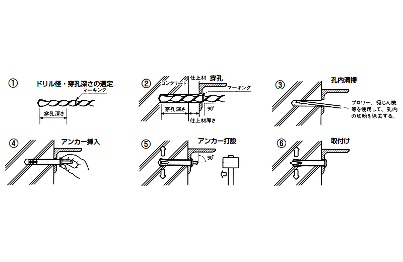 Menetapkan sauh dengan memukul kuku ke dalam sauh. Kuku memperluaskan jangkar hit dalam konkrit untuk mengikat penutup. Anchor tanpa skru sesuai untuk melampirkan penutup dan objek ringan.
